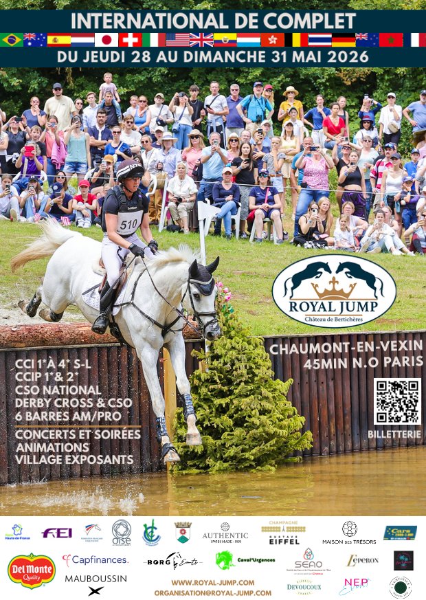 Un concours complet international 4* S/L palpitant, des derby cross en pleine nature dans un domaine majestueux, le tout animé par un village de 50 exposants, des concerts et bien plus : attendez-vous à du grand spectacle du 28 mai au 31 mai 2026 au Royal Jump à Chaumont-en-Vexin !
